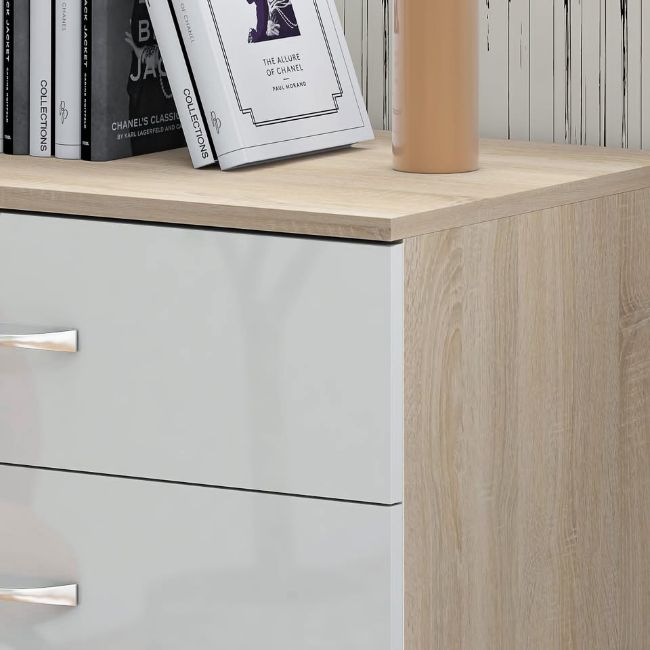 Material: White High Gloss Drawer Fronts & Sonoma Oak Coloured Frame.