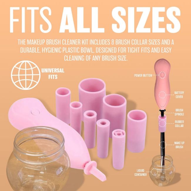 8 SIZES - Accommodate all size brushes since clean and dry automatic brush cleaner includes an ergonomic electric switch for easy intuitive operation. All parts of the kit are precision crafted for tight, leak proof fit. The bowl is made of hygienic plastic and will not break if dropped. easy use automatic makeup brush cleaner and dryer.