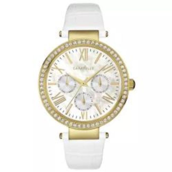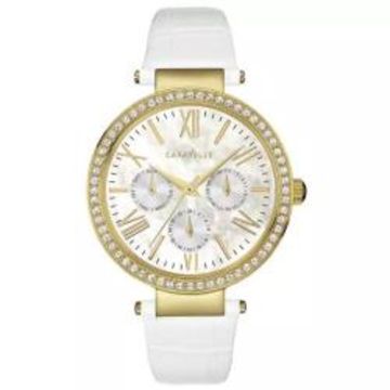Add sophistication and sparkle to your style with the Caravelle New York X5 Women's Watch. Featuring a precise quartz movement and eye-catching design with genuine leather strap and sparkling crystal accents. Model 44 N104. Perfect as a beautiful gift, the watch comes in an elegant gift box.