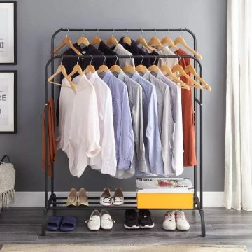 Wardrobe Clothes Storage Organiser With 2 Hanging rails