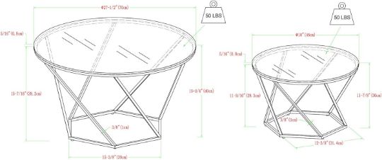 Add a modern Boho element to your living room with our unique geometric nesting table set. Includes one large and smaller coffee table to give you extra table space so you can display your magazines and reading material on one, while the other can be used to decorate with glass vases within your living room. The artfully designed, geometric-shaped base is made up of a painted, sturdy metal frame. Our bold accent table set will be a wonderful addition to your home.