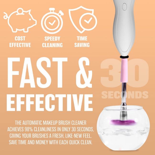 FAST MAKEUP BRUSH CLEANER & DRYER - Just 30 seconds, By the automatic brush cleaner, deeply cleans and dries your makeup brushes, achieve 98% cleanliness, like getting a new makeup brush. Save your time and money!