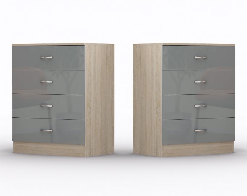 10 X Chest of 4 drawers - The 4 drawer chest is an excellent addition to our high gloss bedroom furniture range of stylish yet affordable furniture. The 4 drawer chest provides you with the storage space that a wardrobe cannot. The sturdy individual drawers are in one column of 4. They can take a remarkable amount of weight due to the high strength manufactured wood veneer frame. The drawers fit flush and are manufactured to strict conditions which mean they are stable and firm.