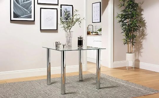 LARGE PALLET NOVA GLASS DINING TABLE LEG CHROME 90CM ONLY
