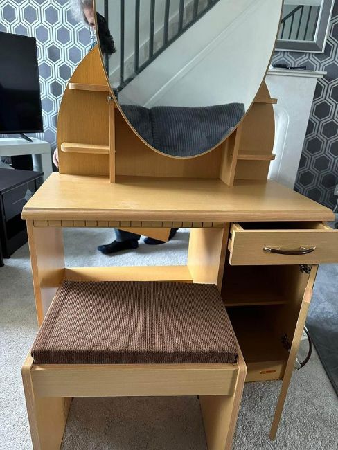 It’s brand new with original packaging/ comes boxed. Dressing table with mirror and stool.