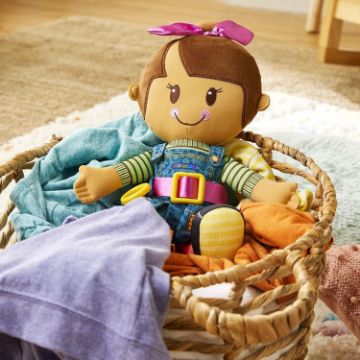 - Help this soft plush boy doll get ready for the day! Kids ages 2 and up will love practicing with zippers, buttons, shoelaces, and more