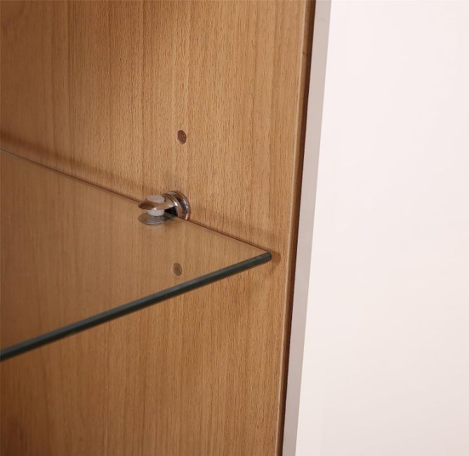 - Contemporary modern high gloss finish doors with silver metal handles and pneumatic hinges.