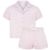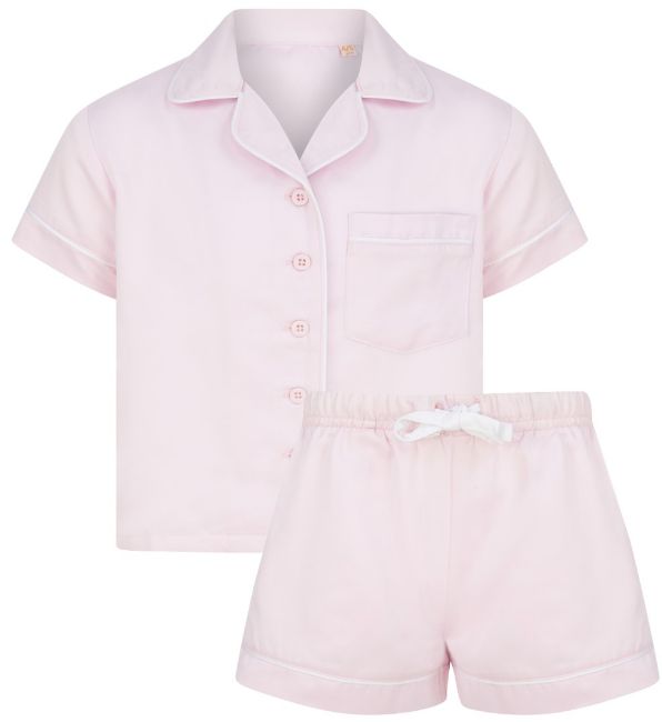 Satin brushed back short sleeved pink short pants women's pyjamas. Each set comes in wrapped gift box with pyjama top, pyjama pants, eye mask and bobble. Perfect for Gifts and Personalization.