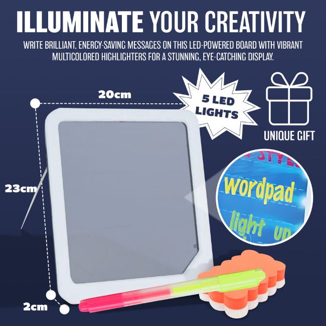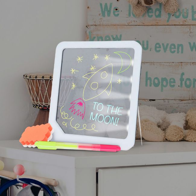 ABOUT THIS ITEM - Looking for fun creative activities for kids? The led neon drawing set will spark your child's creativity! The fantastic light drawing board and florescent art pens offer a fun alternative to regular art kits as it transforms drawings making them glow and light up. So turn out the lights and watch the light board glow!