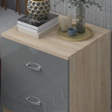 2 Drawer Bedside cabinet - The bedside cabinet in our high gloss bedroom furniture range has been manufactured with the strength and sturdiness you look for in a chest, whilst the high gloss drawer front gives the piece that finesse that its been longing for