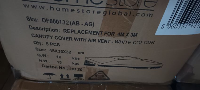 50 x white canopy cover with air vent, size-45x35x32 cm (10 boxes Containing 5 pieces per box)
