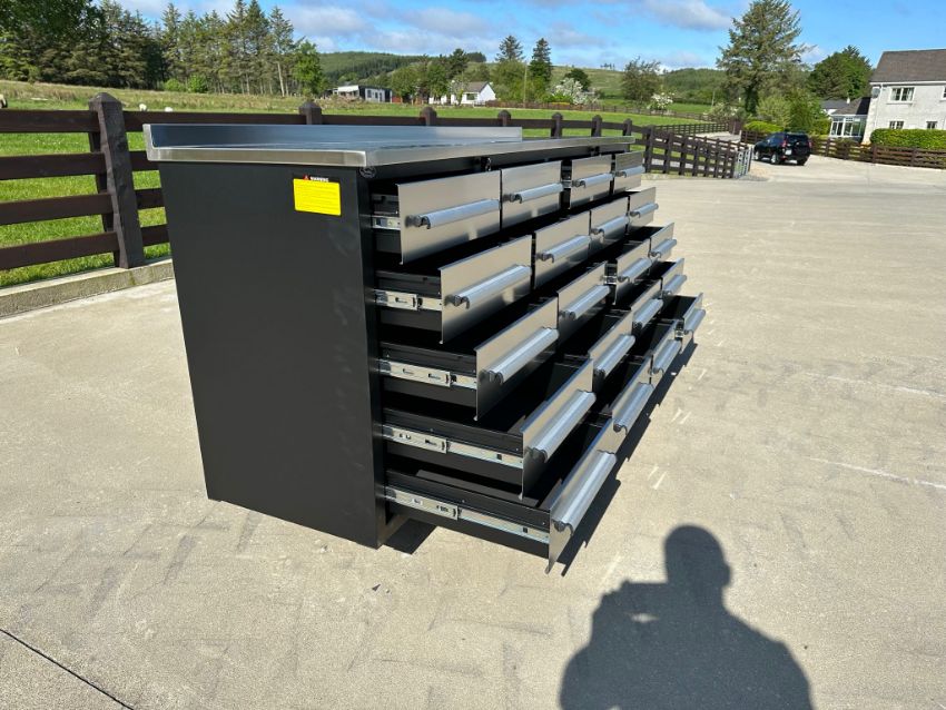 Brand New Unused Stainless Steel 7ft Work Bench with 20 Drawers