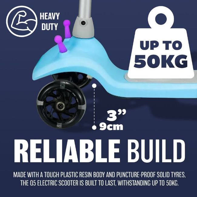 Suitable for ages 4 - 8 years, the Q5 electric scooter is a perfect first electric scooter. The e-scooter handlebar has three height levels and is compactable for easy storage.