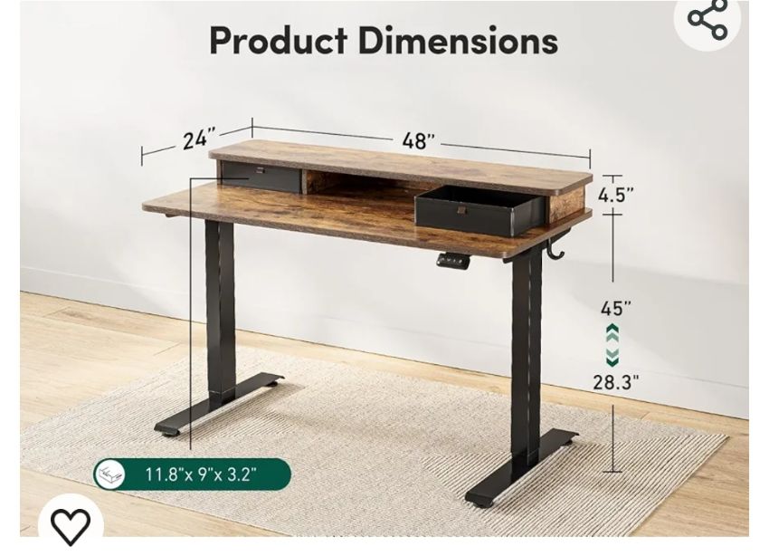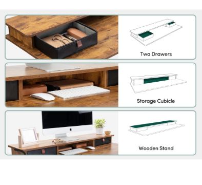 • Spacious Work Space: The top shelves with double drawer design expertly make your desktop tidier and helps you head up when you put your screen on it