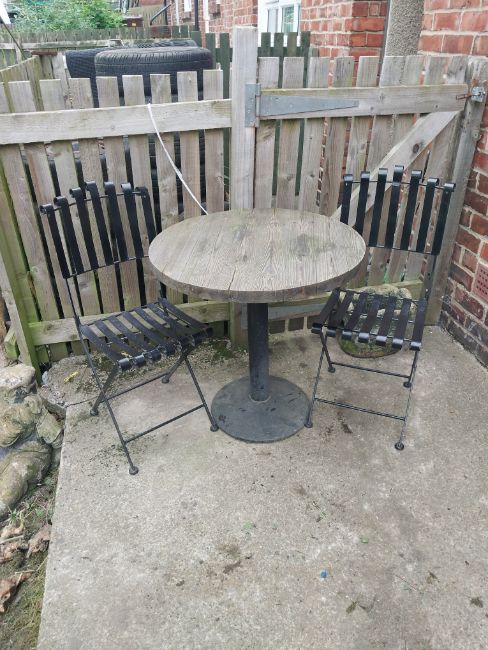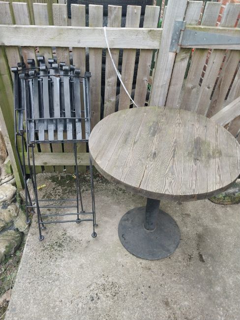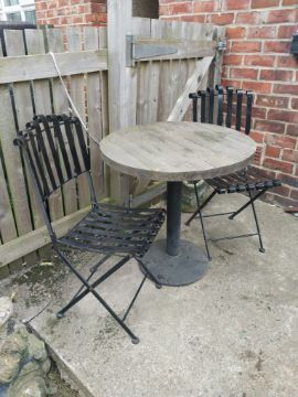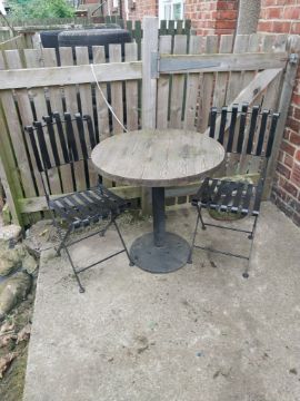 2x folding metal chairs wooden top metal.base table last one from cafe clearance can pallet at cost