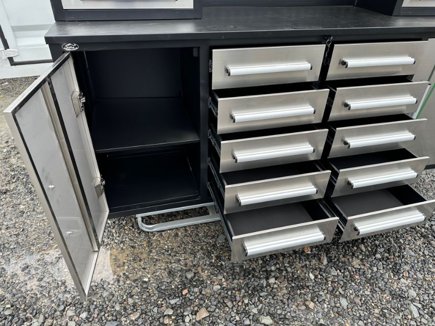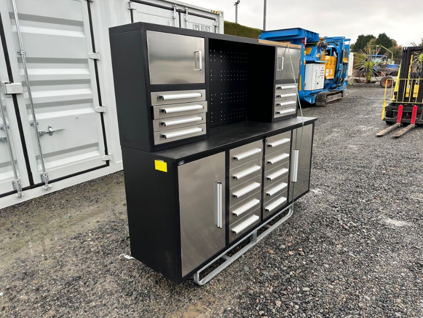 Brand New Unused Stainless Steel 7ft Work Bench with 18 Drawers & 4 Cabinets