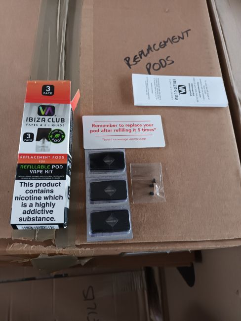 Approx 4500 x ibiza club vape replacement pods (packs of 3 pods) (do not include liquid)