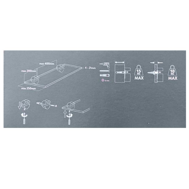 Opening Size: Adjustable to fit 6-22mm thick shelf