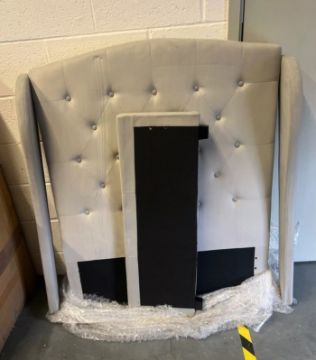3ft 6" Single Bed Headboard Winged Buttoned + Footboard Grey