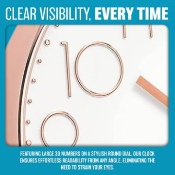 • ✔️ LARGE NUMBERS DISPLAY - Stylish modern round dial with large 3D numbers make it easy to see from any corner of your room and you won't be straining your eyes to read it.