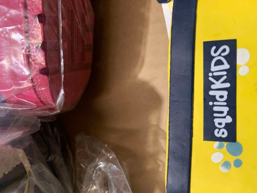A bulk lot of 100 pairs of Squid Kids wellies. This lot includes 10 boxes of brand-new, colour-changing Squid Kids wellies in a mix of various sizes, styles, and colours.