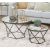 Add a modern Boho element to your living room with our unique geometric nesting table set. Includes one large and smaller coffee table to give you extra table space so you can display your magazines and reading material on one, while the other can be used to decorate with glass vases within your living room. The artfully designed, geometric-shaped base is made up of a painted, sturdy metal frame. Our bold accent table set will be a wonderful addition to your home.
