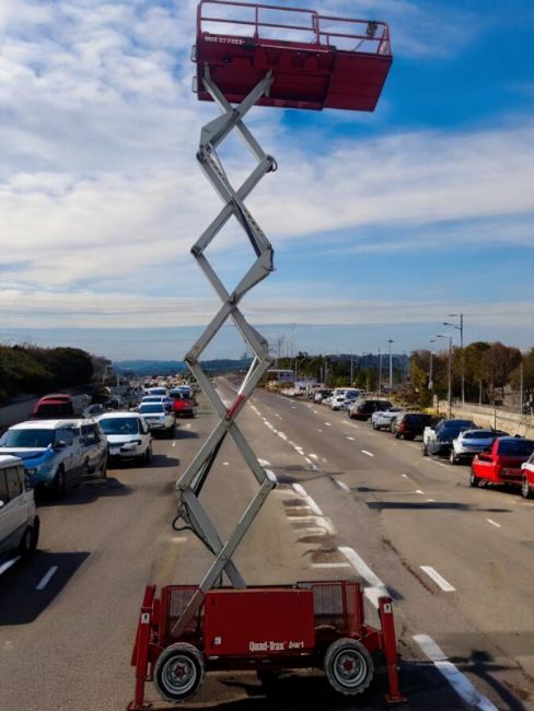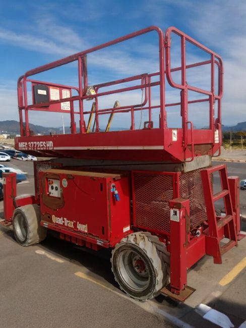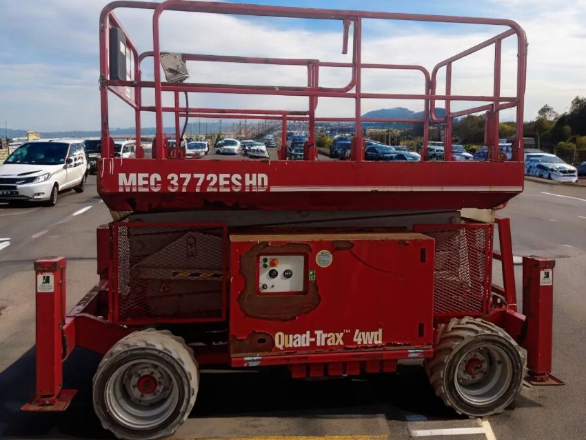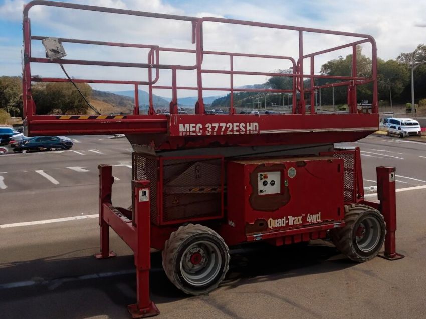 This MEC 3772 scissor lift offers a self-propelled, battery-powered platform with a working height of up to 13 metres. Equipped with 4X4 drive for enhanced mobility and levelling jack legs for stability during operation, it is designed for rough terrain applications.