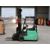 Compact electric forklift with excellent maneuverability, ideal for tight spaces and warehouse operations.