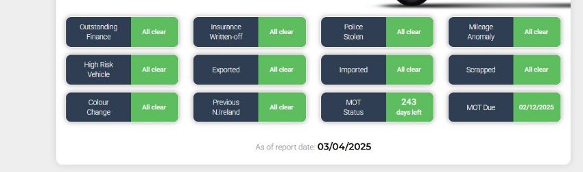 As of report date {3/04/2025} HPI report is all clear - See image!