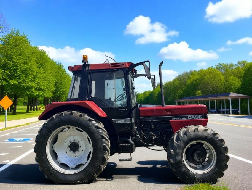 Case 956XL Turbo Tractor with essential agricultural features and rear linkage capability.