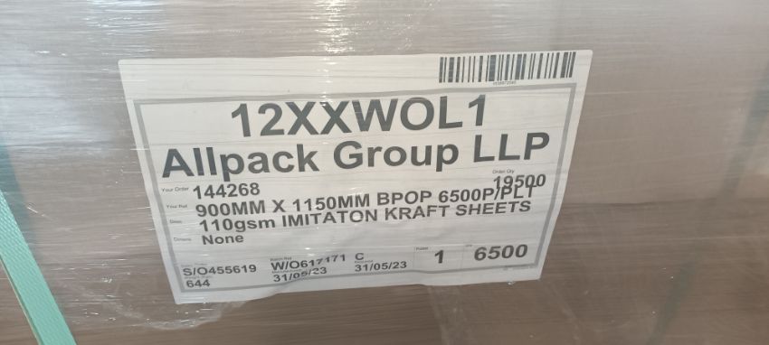PALLET CONTAINING 6500 X IMITATION KRAFT SHEETS 900MM × 1150MM 110GSM - RRP £2600