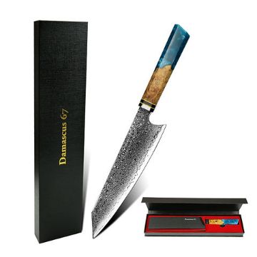Job lot x 25: Damascus 67 Ocean Sapphire Resin 8 Inch Chef Knife 67 Layers of Damascus Steel & Sheath Included.