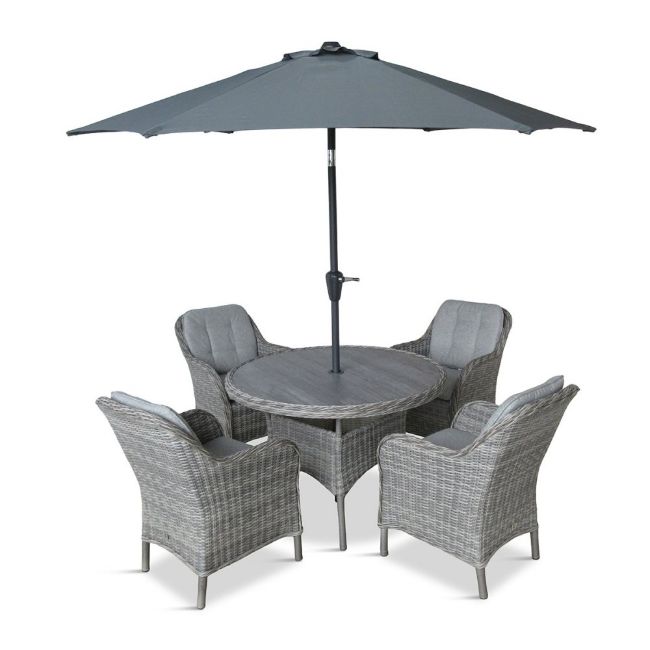 Experience the perfect blend of functionality, style with the St Tropez Stone 4 Seat Dining Set with 2.5m Parasol.