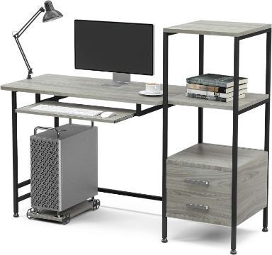 - STORAGE SPACE: 2-tier shelves and drawers with keyboard tray to store or decorate your desk, providing plenty of room for under-desk storage and organisation.