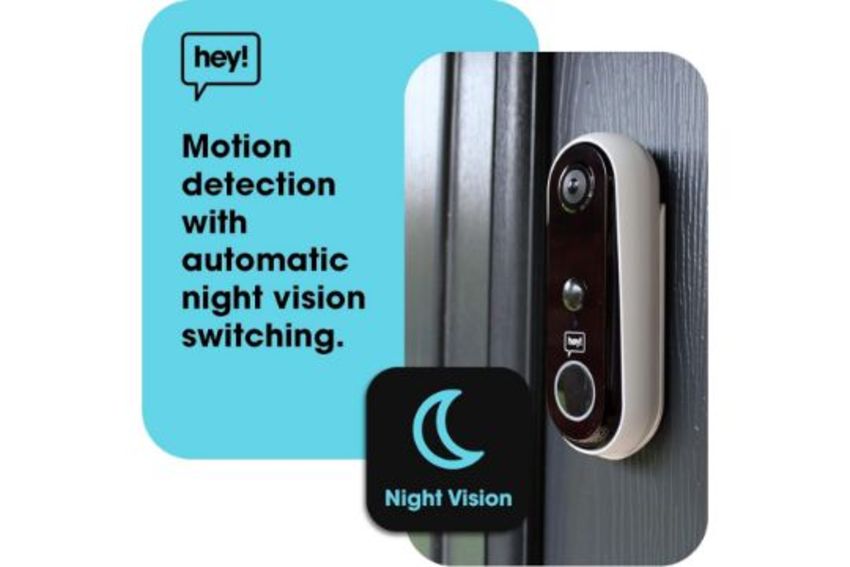 Wifi Doorbell Security Camera Outdoor Wireless: Secure your home with a hey! wireless doorbell camera with full motion detection. The IP54 waterproof camera has a 120° viewing angle, 10m automatic night vision range, and 2-way audio.