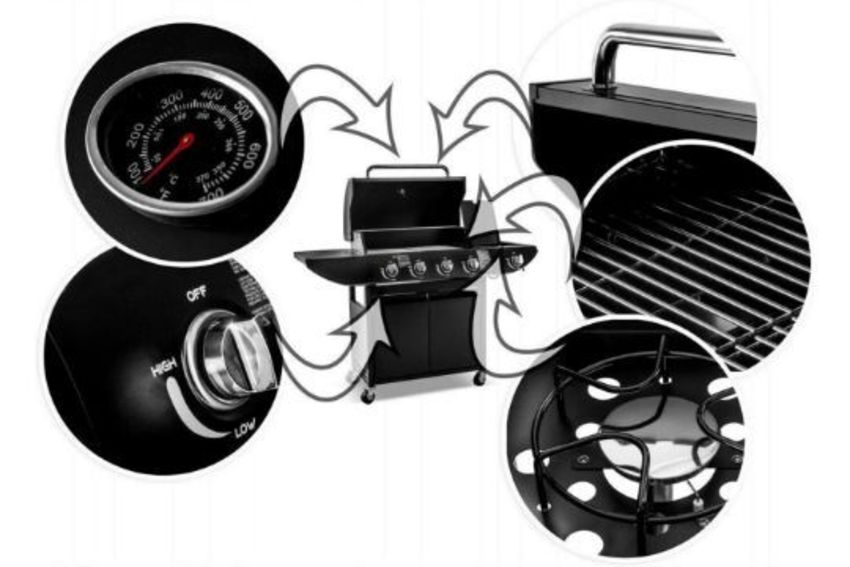 BULK LOT OF 8 Campfire 4+1 Gas Burner Grill BBQ Barbecue with Side Burner & Storage Garden - Black