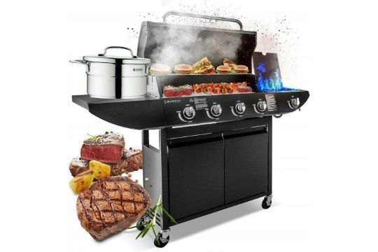 BULK LOT OF 8 Campfire 4+1 Gas Burner Grill BBQ Barbecue with Side Burner & Storage Garden - Black