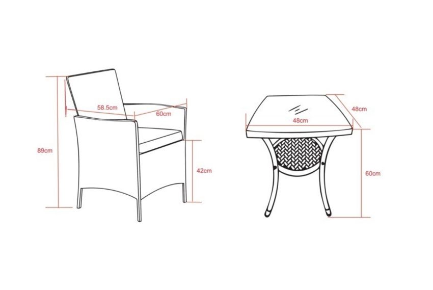 Includes two chairs and a tea table with a 5mm clear tempered toughened glass top.