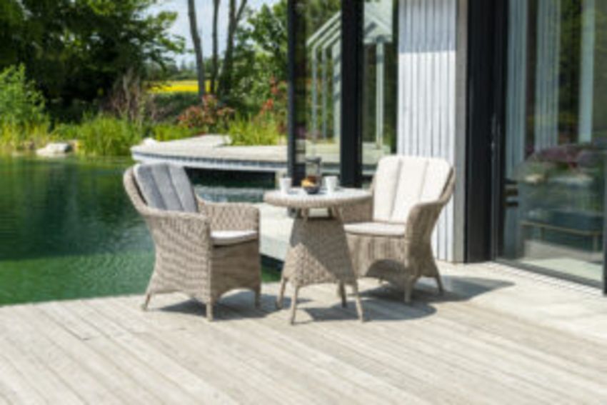 Within the Alexander Rose Hazelmere Range you will find beautifully hand-woven garden furniture. Hazelmere offers the perfect combination of style, colour and quality to grace your outdoor (or indoor) space. This collection is perfect for traditional country gardens, and conservatories/orangeries. Manufactured with a 4mm round profile weave and a lightweight aluminium frame. The Hazelmere weave pattern features the most classical basket weave design, which is complimented with the stunning colour of a Grey weave with ‘Pistachio’ cushions. The Alexander Rose Hazelmere range includes dining and lounging furniture, as well as some unique accessories such as daybeds and loungers. All tables in this range feature a unquie ceramic effect inset table top… the icing on the cake. A full 3-year (conditional) warranty is offered with all Alexander Rose Hazelmere products.