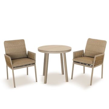 The range has a natural earthy look with weave accents, wood-effect table tops and textured natural cushions.