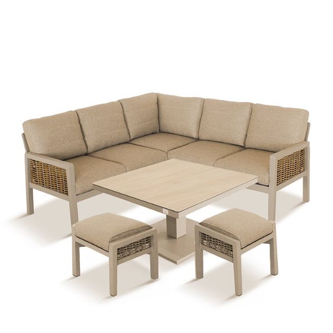 The range has a natural earthy look with weave accents, wood-effect table tops and textured natural cushions.