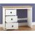 Three drawer dressing table in white with distressed waxed pine top featuring metal handles
