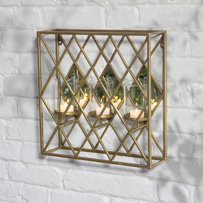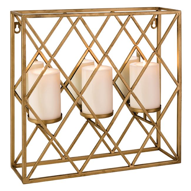 2 CARTONS OF 8 PCS - 37cm Gold Wall Mounted Square Criss-Cross Candle Holder