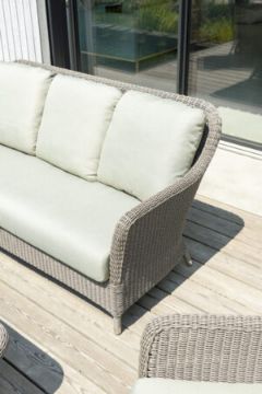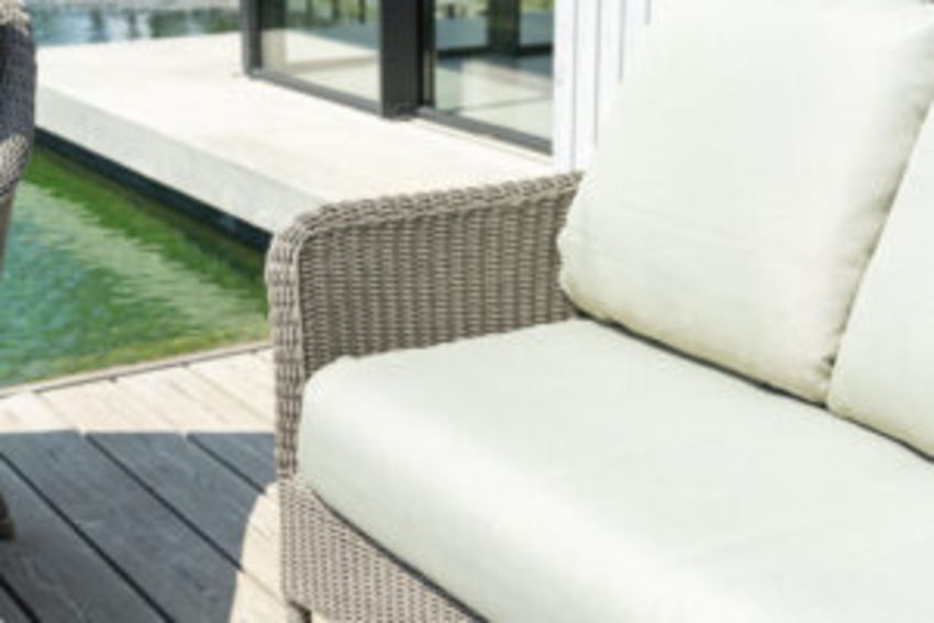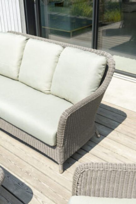 Within the Alexander Rose Hazelmere Range you will find beautifully hand-woven garden furniture. Hazelmere offers the perfect combination of style, colour and quality to grace your outdoor (or indoor) space. This collection is perfect for traditional country gardens, and conservatories/orangeries. Manufactured with a 4mm round profile weave and a lightweight aluminium frame. The Hazelmere weave pattern features the most classical basket weave design, in a Grey weave with ‘Pistachio’ cushions. The Alexander Rose Hazelmere range includes dining and lounging furniture, as well as some unique accessories such as daybeds and loungers. All tables in this range feature a unique ceramic effect inset table top… the icing on the cake. A full 3-year (conditional) warranty is offered with all Alexander Rose Hazelmere products.
