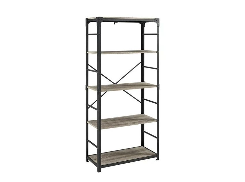 Angle Iron 64″ Urban Industrial Bookshelf – Driftwood by Walker Edison
