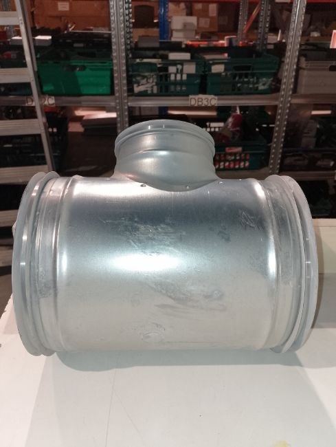 Galvanised T-Piece with quick-fit safe-seal spigots for fast and easy installation. First measurement is the main trunk size, second dimension is the branching spigot size. All spigots are male and will fit inside Galvanised Spiral Ducting or other female fittings.