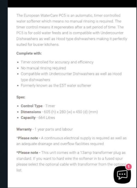 Watercare PC5 Automatic Water Softener - 10ltr - used