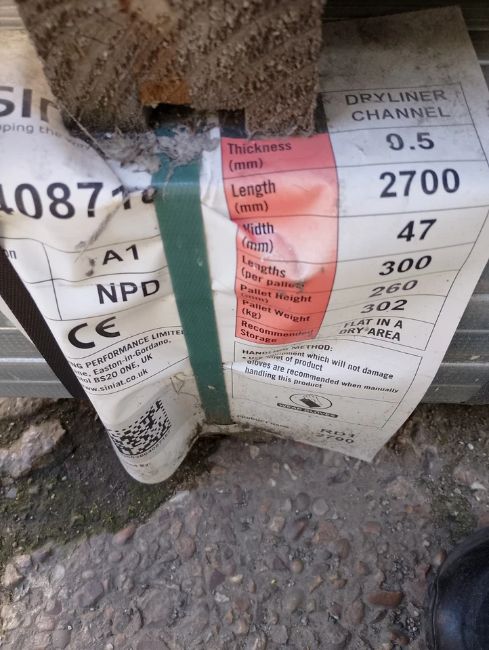 A galvanised steel furring channel, used for plasterboard fixing in the GTEC Drylining System.