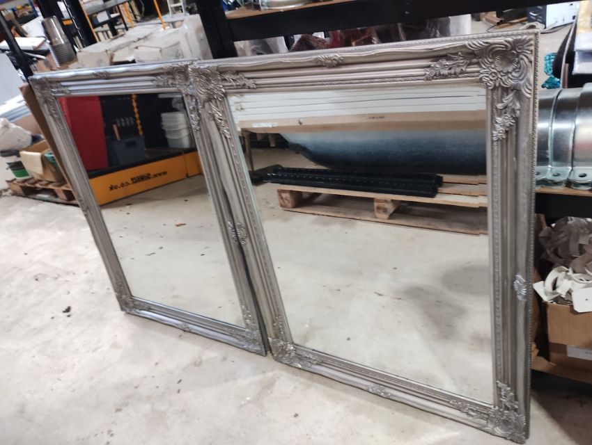 X2 Silver Ornate Wooden Mirrors 740x940mm – used, slight damage to top left of both frames.
