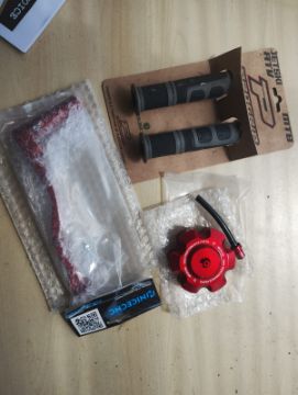 Yamaha Blaster 200 - Pro Grips - black grips - Anodized red NICECNC Fuel cap and Gear Changer - Brand new unopened